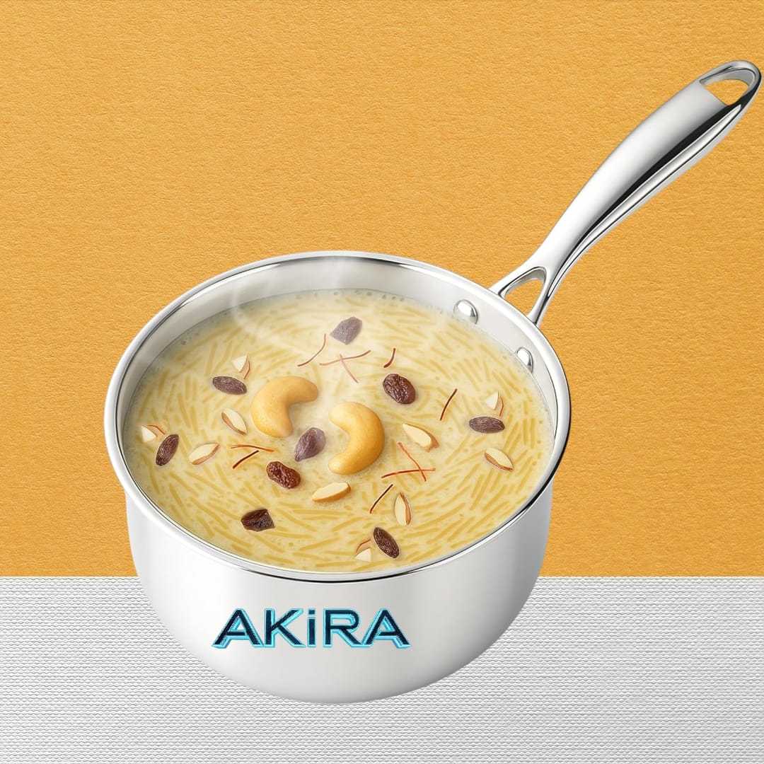 AKiRA Try Ply Sauce Pan, Tea Pan, Chai Pan, Small Pan, 14Cm/5.2Inch, 1 Liter, 0.56Kg, Induction Base Friendly, 3-Layer Triply Thick Bottom, 100% Toxin-Free